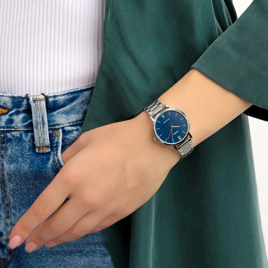 Casio LTP-VT01L-7B3 Women's Minimalistic Silver Dial Blue Leather Band Analog Watch