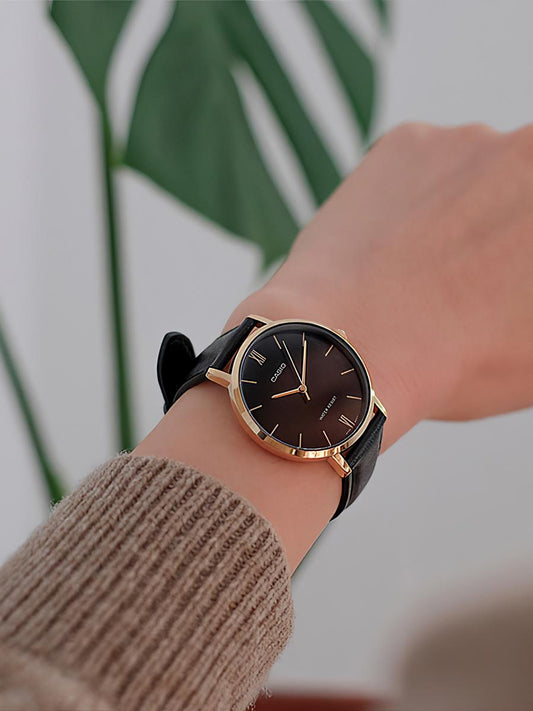 Sold out نفذت الكميةCasio LTP-VT01GL-1B Leather Black Watch , Women Watches